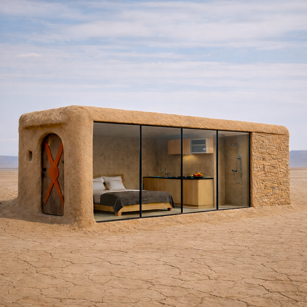 Domes and villas with panoramic skylights, earth-tone interiors, and total privacy
